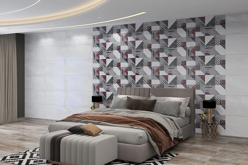 یکی از ترندهای محبوب در طراحی داخلی، ایجاد دیوار شاخص یا دیوار مرکزی (Accent Wall) با استفاده از سرامیک است. در این روش، تنها یکی از دیوارها (معمولاً دیوار پشت تخت ) با طرحی خاص و متفاوت پوشانده می شود تا مرکز توجه فضا باشد.
