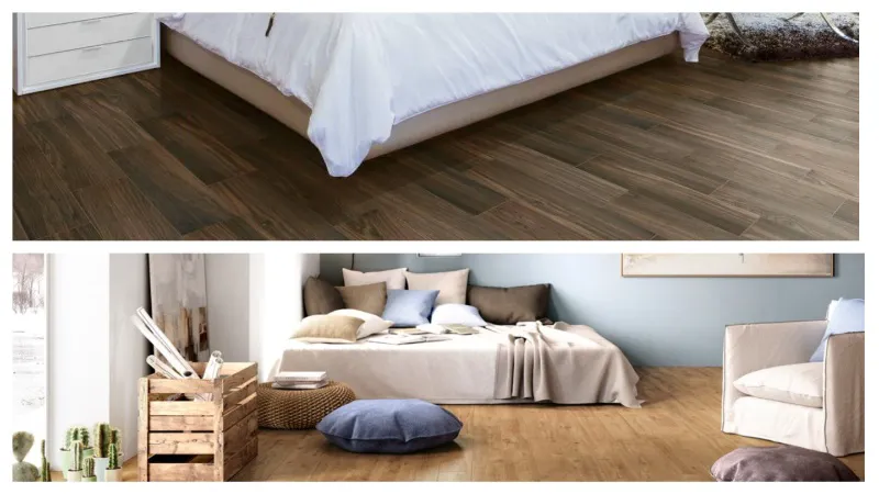 مقایسه سرامیک طرح پارکت و پارکت برای کف اتاق خواب