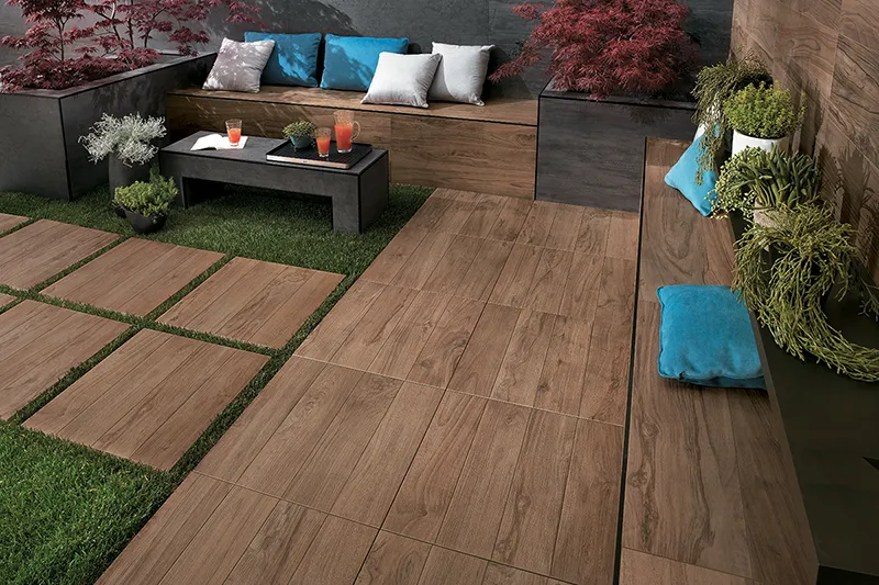 استفاده از سرامیک طرح چوب برای کف حیاط نه تنها از نظر اقتصادی به صرفه است، بلکه به دلیل طول عمر بسیار بالا، شما را از بازسازی های زود هنگام بی نیاز می کند. این متریال با بافت های برجسته خود، حس لمس چوب واقعی را منتقل می کند در حالی که تمام نقاط ضعف چوب در آن برطرف شده است.